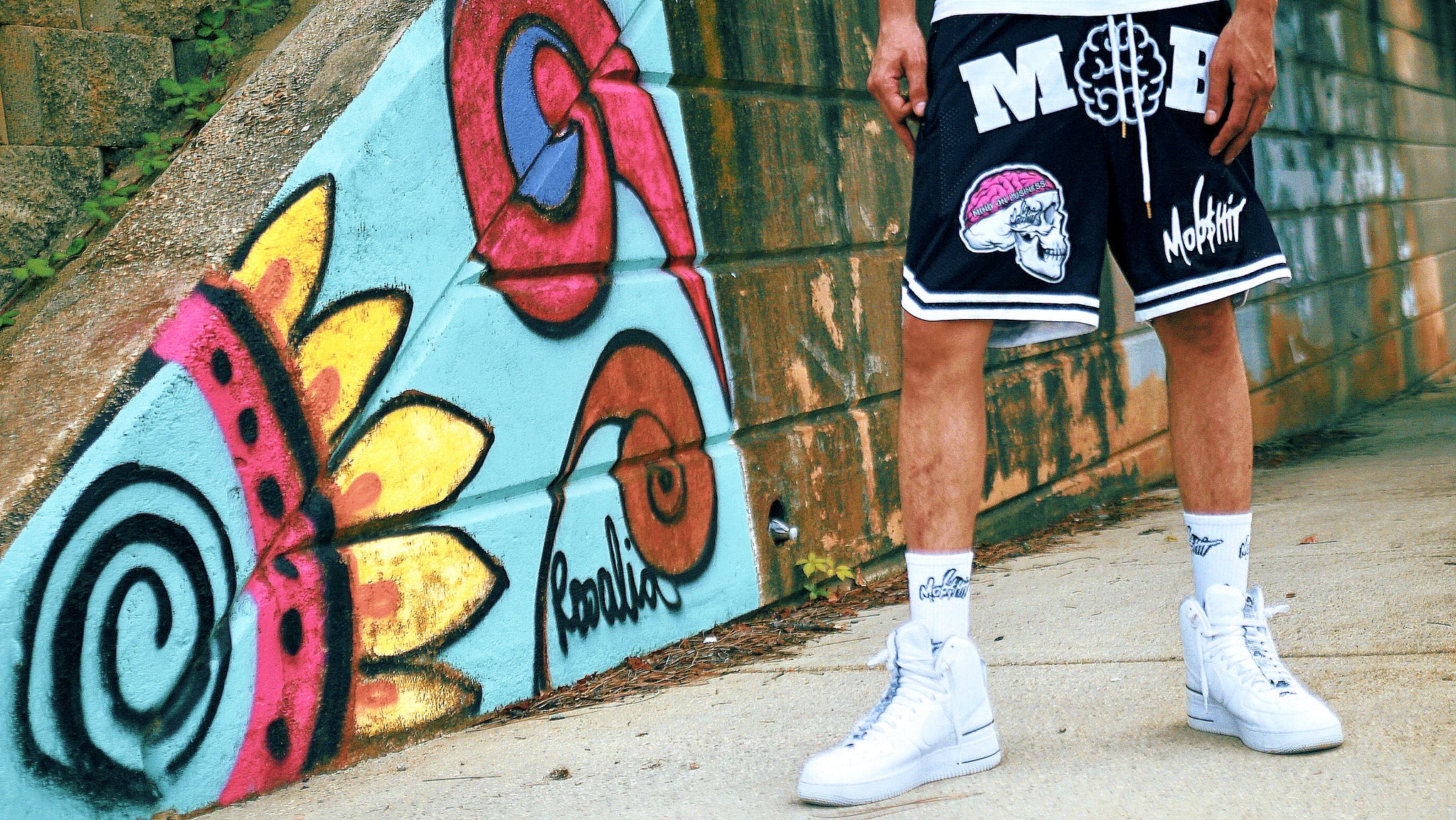 Our new MOB shorts embroidered with our vintage official MOB patches. 2 pockets with zippers to keep all your accessories secure.